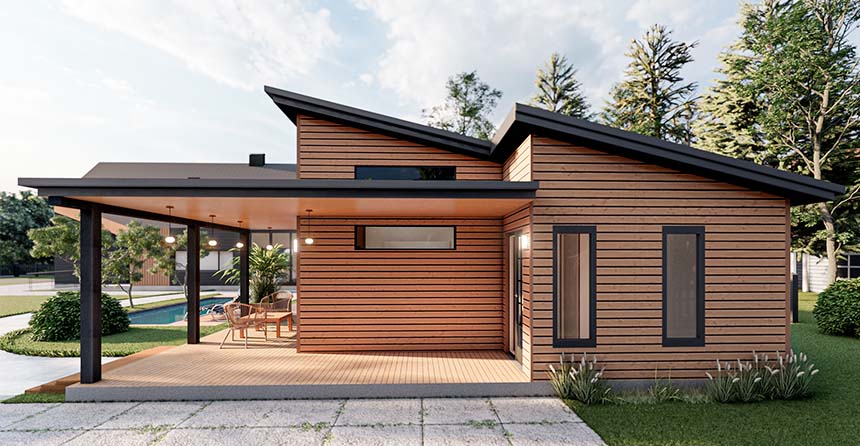 Pensé pour s’intégrer harmonieusement à votre propriété, ce modèle offre un design architectural contemporain qui se distingue par ses lignes franches, son revêtement chaleureux et sa grande fenestration. Mais sa véritable force se trouve dans sa polyvalence d’usage : logement intergénérationnel pour un parent, pied-à-terre pour vos invités, bureau privé, ou même source de revenu locatif durable.